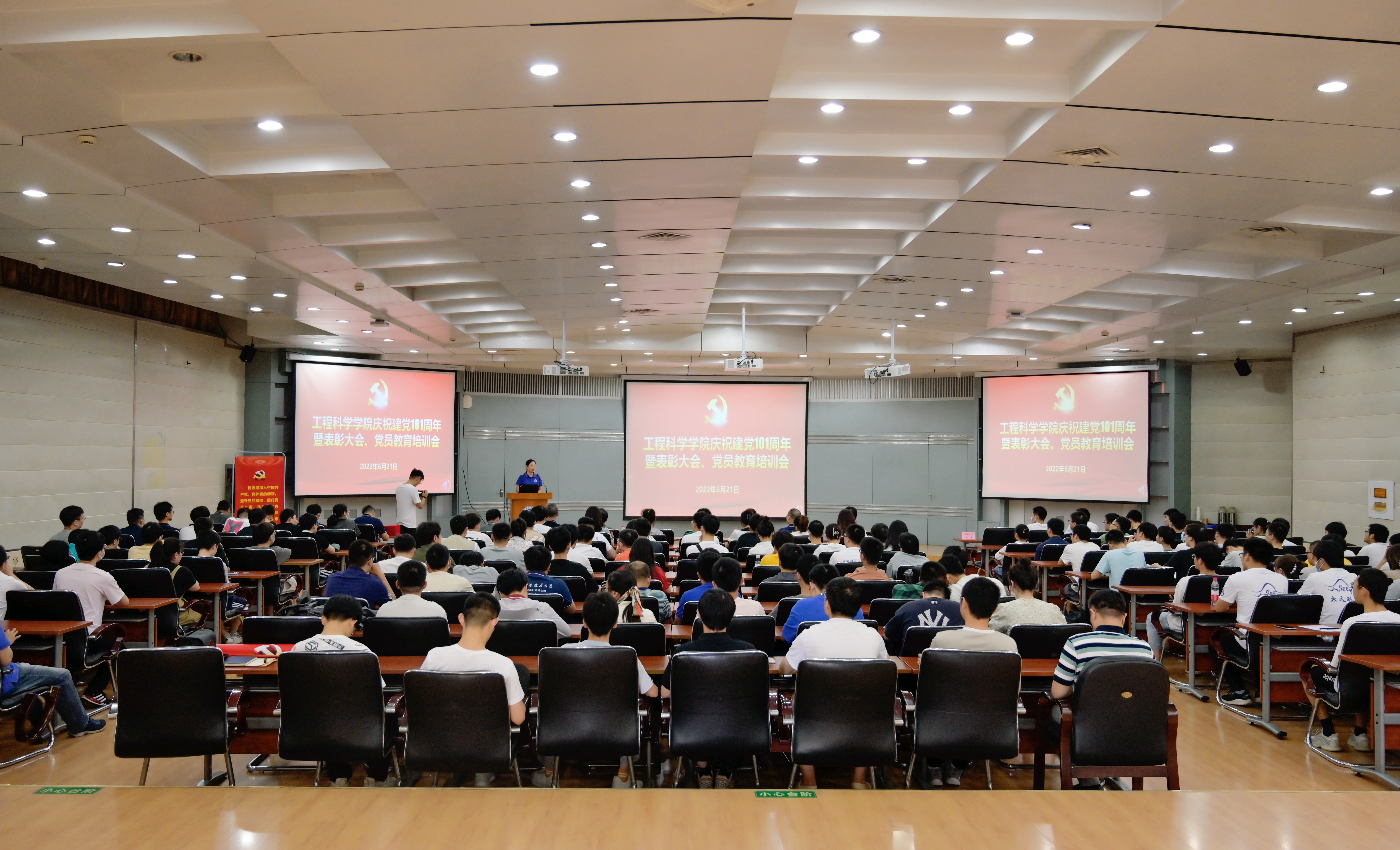 为庆祝中国共产党成立101周年,深入学习习近平新时代中国特色社会主义思想和党的十九届六中全会精神,表彰先进,激励师生以奋发昂扬的精神面貌迎接中国共产党第二十次全国代表大会的胜利召开,6月21日,工程科学学院举行庆祝建党101周年表彰大会暨党员教育培训会。院党委委员、执行院长吴恒安,学院党委书记兼副院长刘明侯、党委副书记赵凯,各党总支书记、党支部书记、委员,预备党员,受表彰师生,院团委、学生会、研究生会骨干等近160人参加大会。会议由院党委副书记牟玲主持。