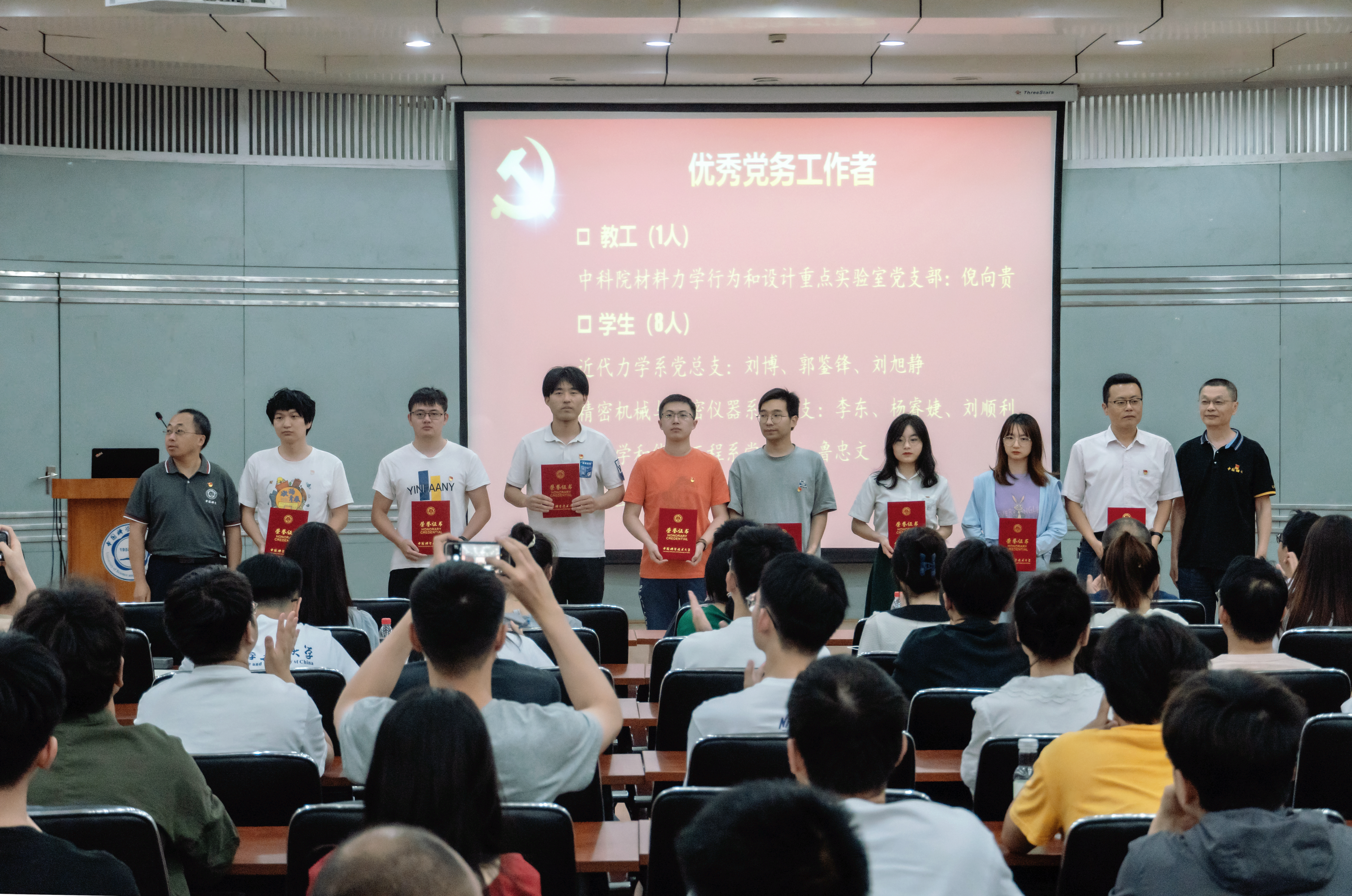 下午4时,会议在庄严的国歌声中开始。随后,牟玲宣读了表彰决定,翟超等57名师生、中科院材料力学行为和设计重点实验室党支部等5个集体分别获得优秀共产党员、优秀党务工作者、优秀学生干部、“工成之日”专项、标杆党支部、先进基层党组织等表彰,学院领导为获奖的优秀个人和先进集体一一颁发证书。