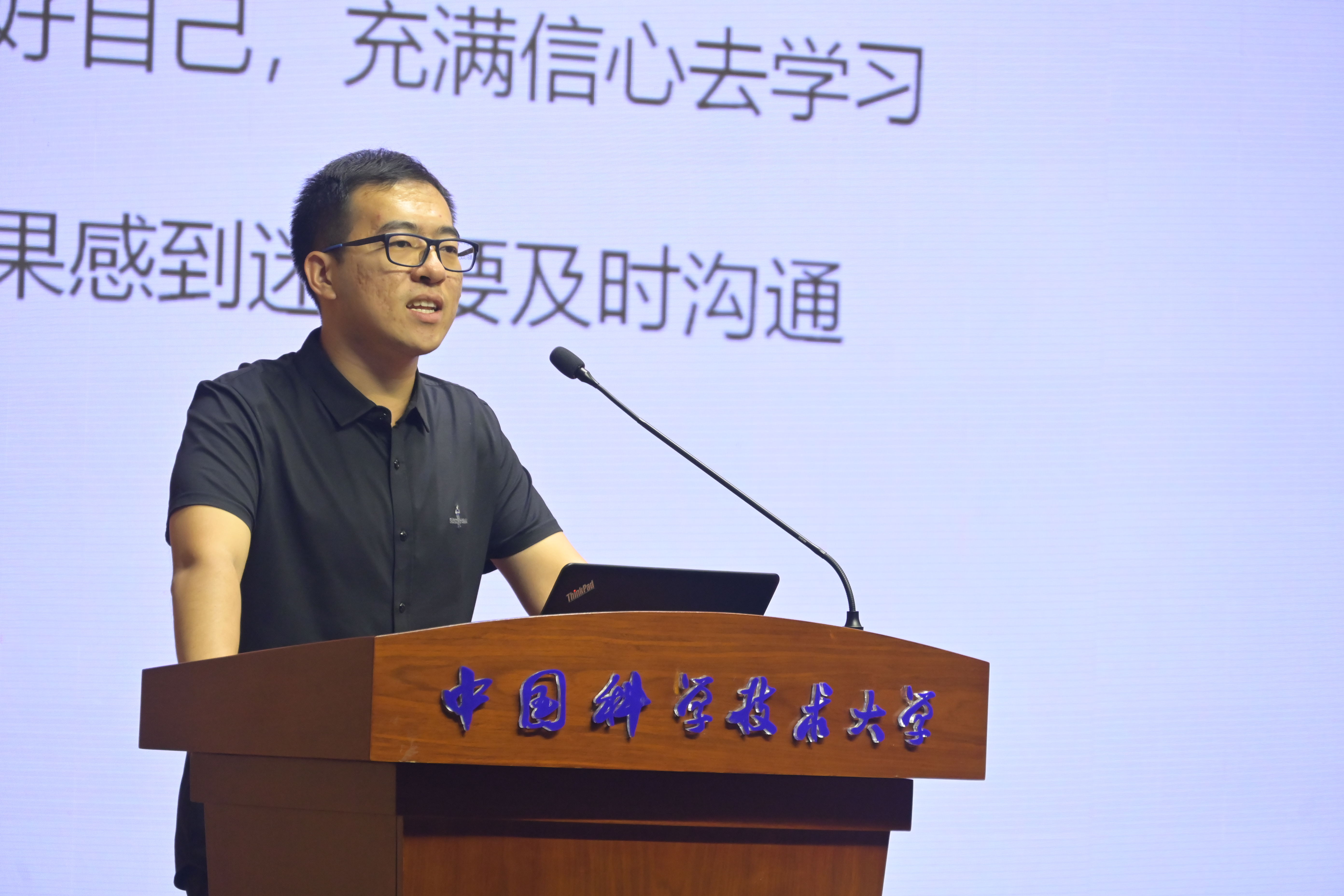 安全科学与工程系2018级毕业生何卓洋、精密机械与精密仪器系2019级博士生马灿臻作为学长代表为新生分享了在科大学习生活的经验。他们结合自身经历,用诙谐幽默的语言分享了学习生活心得和创业感受。通过他们的分享,本科新生们对学院的学习及实践活动更加了解,相信他们能够很快适应大学生活,明确新的目标,找到未来的方向。