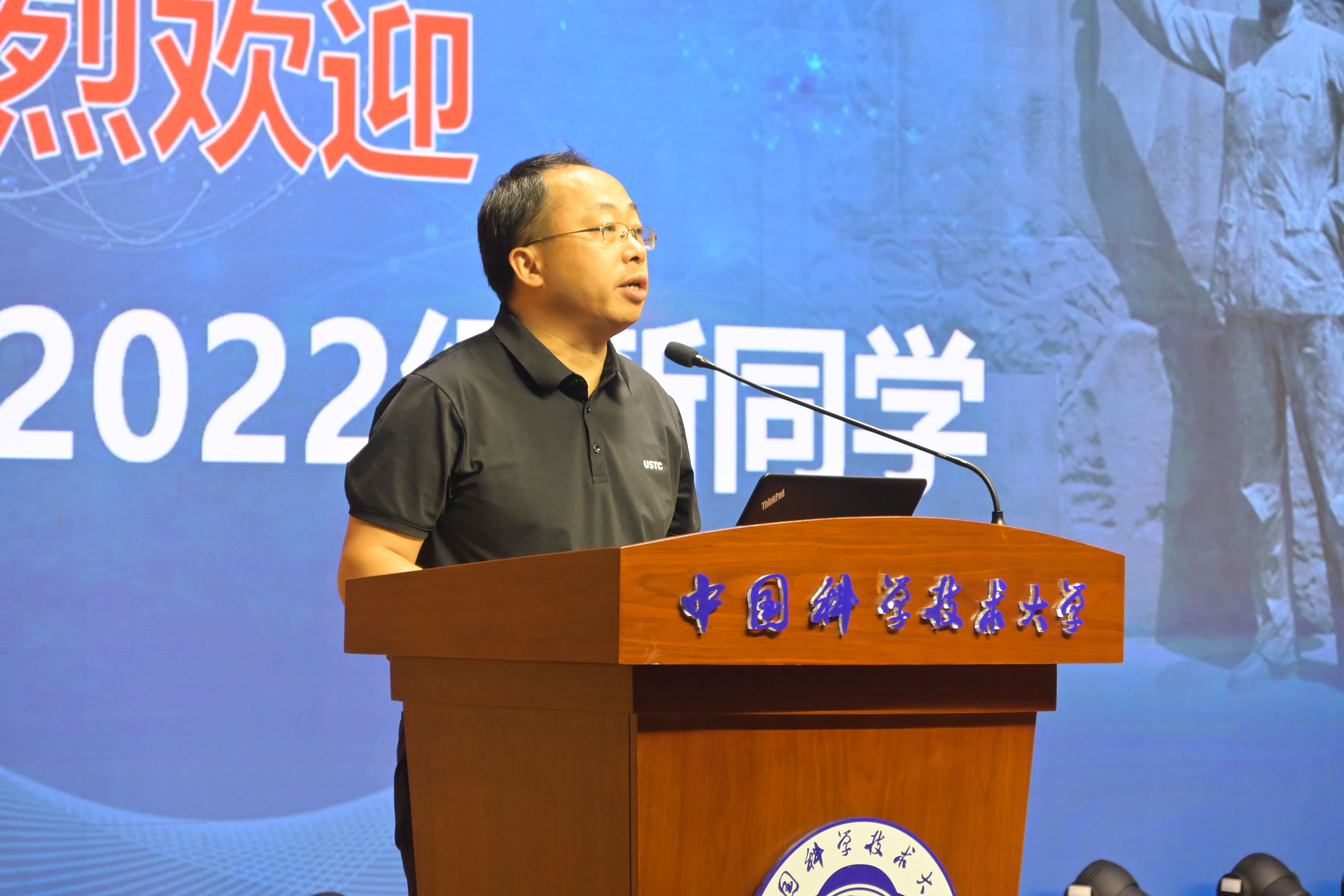 执行院长吴恒安首先对各位本科新生表示热烈欢迎与祝贺。他结合自己当年在科大的学习经历给22级新生们讲了别开生面的一课。他从大学时努力讲好普通话与做化学实验两个小故事切入,指出了大学是可以改变人、塑造人的地方。大学与中学不同,希望各位同学不再以分数为导向,改变学习方法,保持对新事物、新知识的好奇心,成为完全不同的、更好的自己。