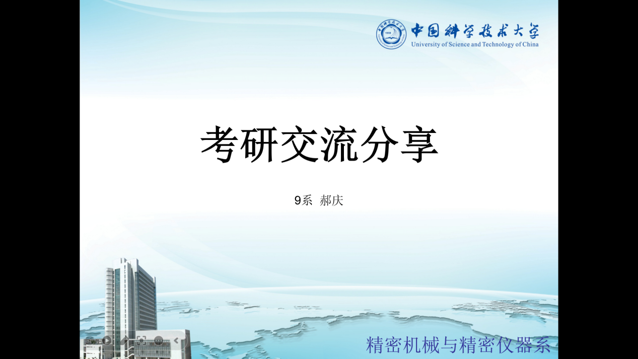 第二位介绍人是精密机械与精密仪器系郝庆同学。他分别从当前应考形势、复习资料、时间安排、复试准备四个方面进行介绍。郝庆同学分析了各门学科考试特点,总结自己复习经验供大家分享,耐心解答大家的提问,同时详细介绍了复试内容、形式和流程。最后建议大家在时间规划上每天至少保证6-8小时学习时间,并进行适当的体育锻炼,放松心态。