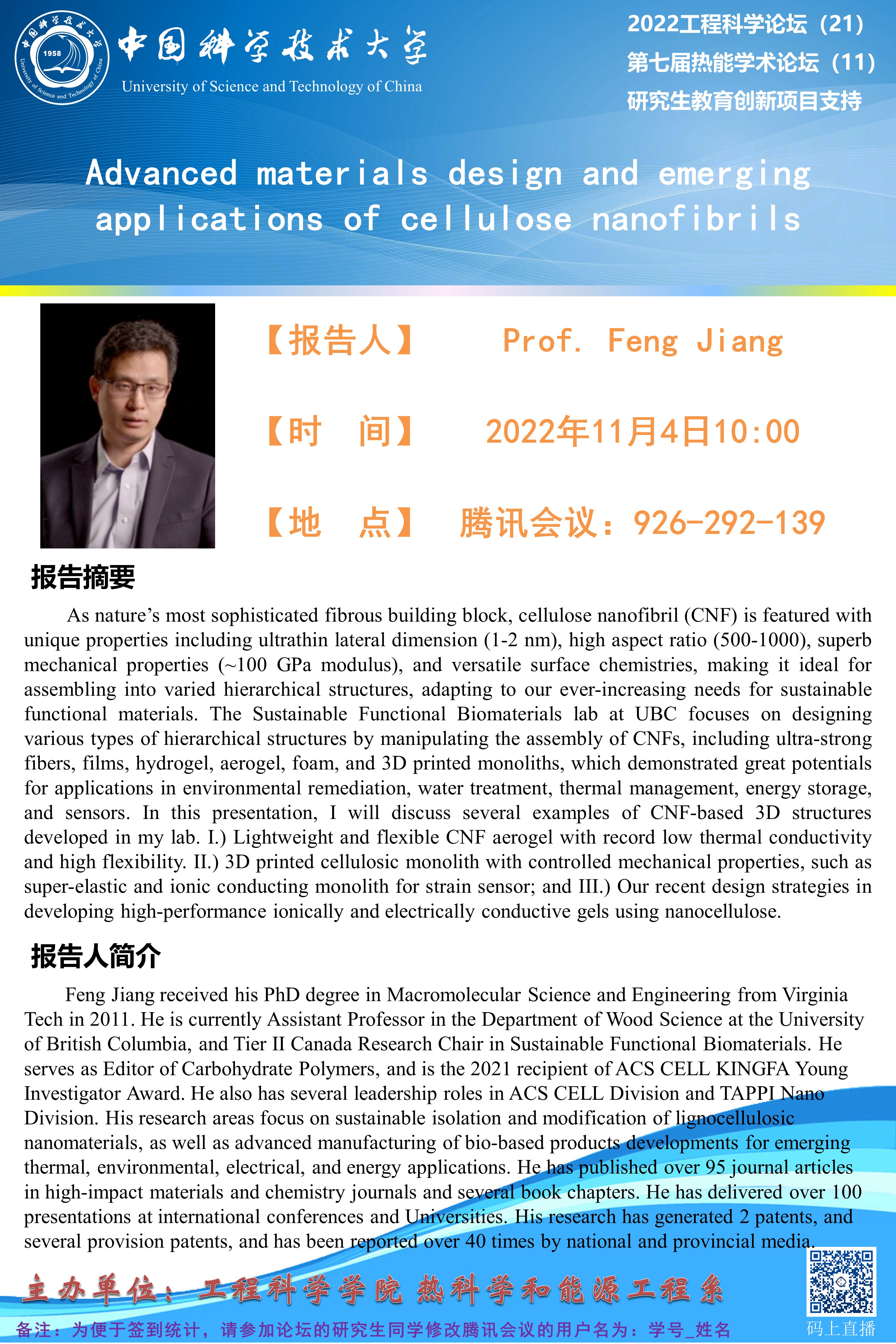 2022工程科学论坛(21)“Advanced materials design and emerging applications of cellulose nanofibrils”