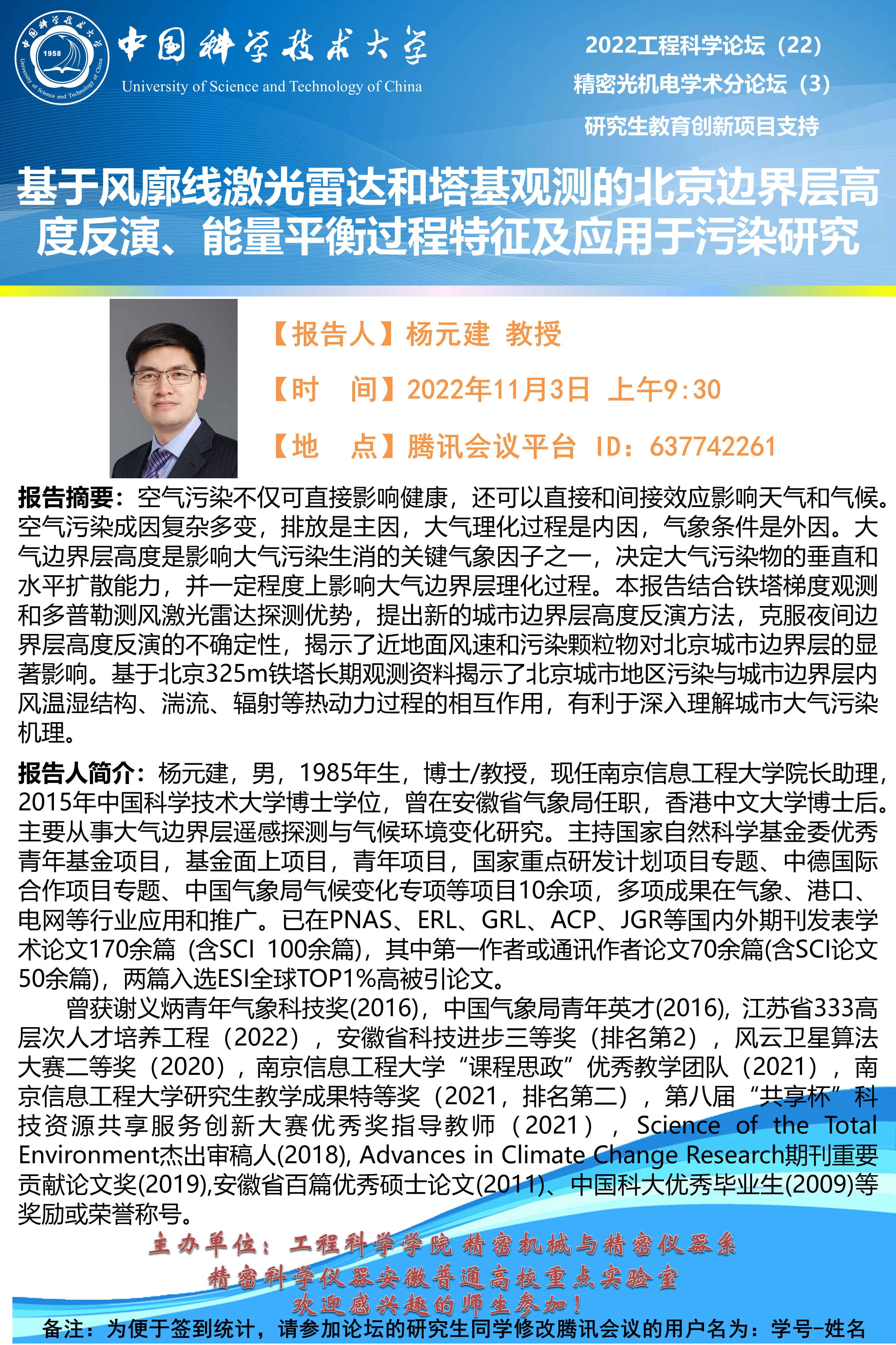 2022工程科学论坛(22)“基于风廓线激光雷达和塔基观测的北京边界层高度反演、能量平衡过程特征及应用于污染研究”