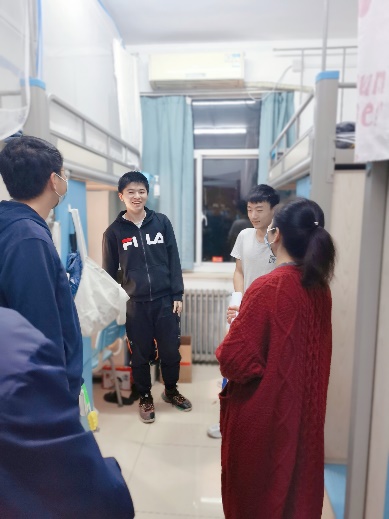 各班级分别召开主题班会,做好解释动员。因大一大二新生宿舍在中校区,而学院领导、班主任老师绝大多数在西区,留守在中校区的班主任范煜、陈晓雅、罗坤主动承担查看寝室、学生网课等情况。2021级本科1班班主任范煜还带着小吃去看望学生,送去贴心的问候。