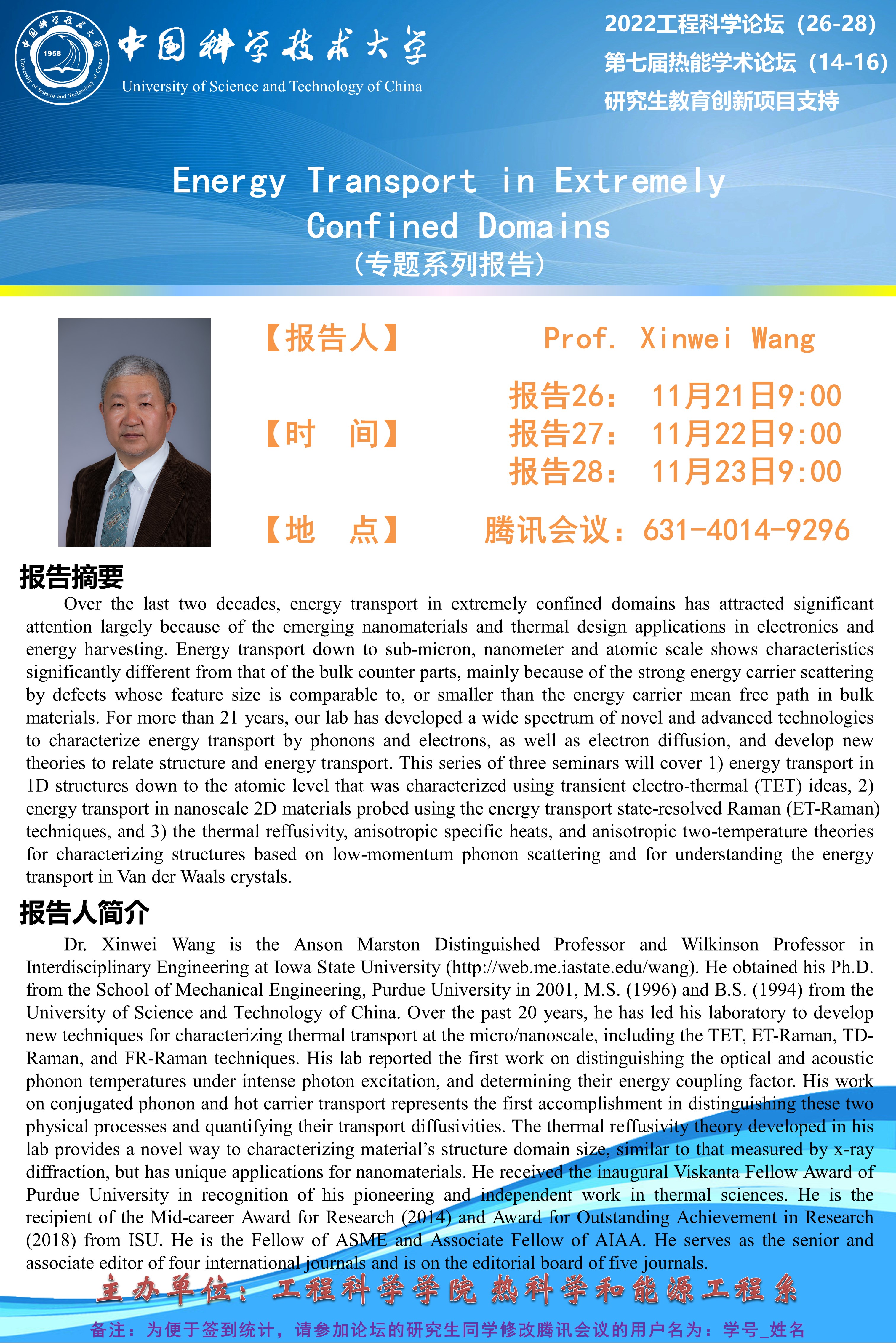 2022工程科学论坛(26-28)“Energy Transport in Extremely Confined Domains”