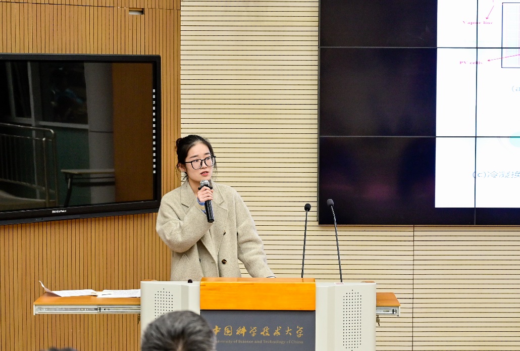 姚亭亭作为第十五届全国大学生节能减排社会实践与科技竞赛一等奖的代表向老师和同学做了作品展示与经验交流。她向在场的同学们介绍了其团队作品亮点,分享了参加节能减排创新大赛的基本流程及宝贵经验,并号召同学踊跃参与学校各类科创比赛。