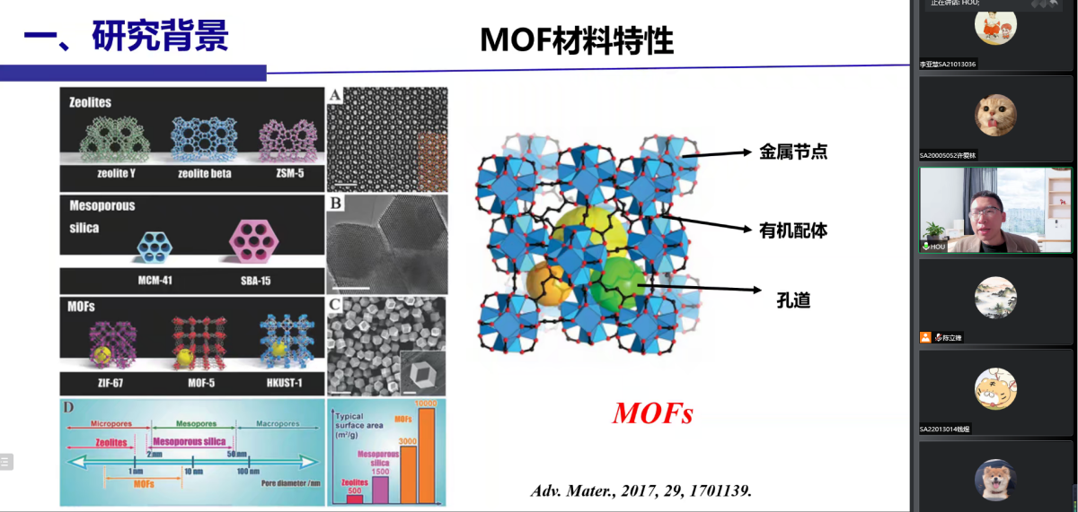 2022年11月25日上午,中国海洋大学侯春朝教授做客必威betway西汉姆网页版 “2022工程科学论坛”为工程科学学院师生做线上必威最新 ,报告题目为“多尺度MOF基功能材料的构筑及能源催化应用”。报告会由热科学和能源工程系陈立锋教授主持。