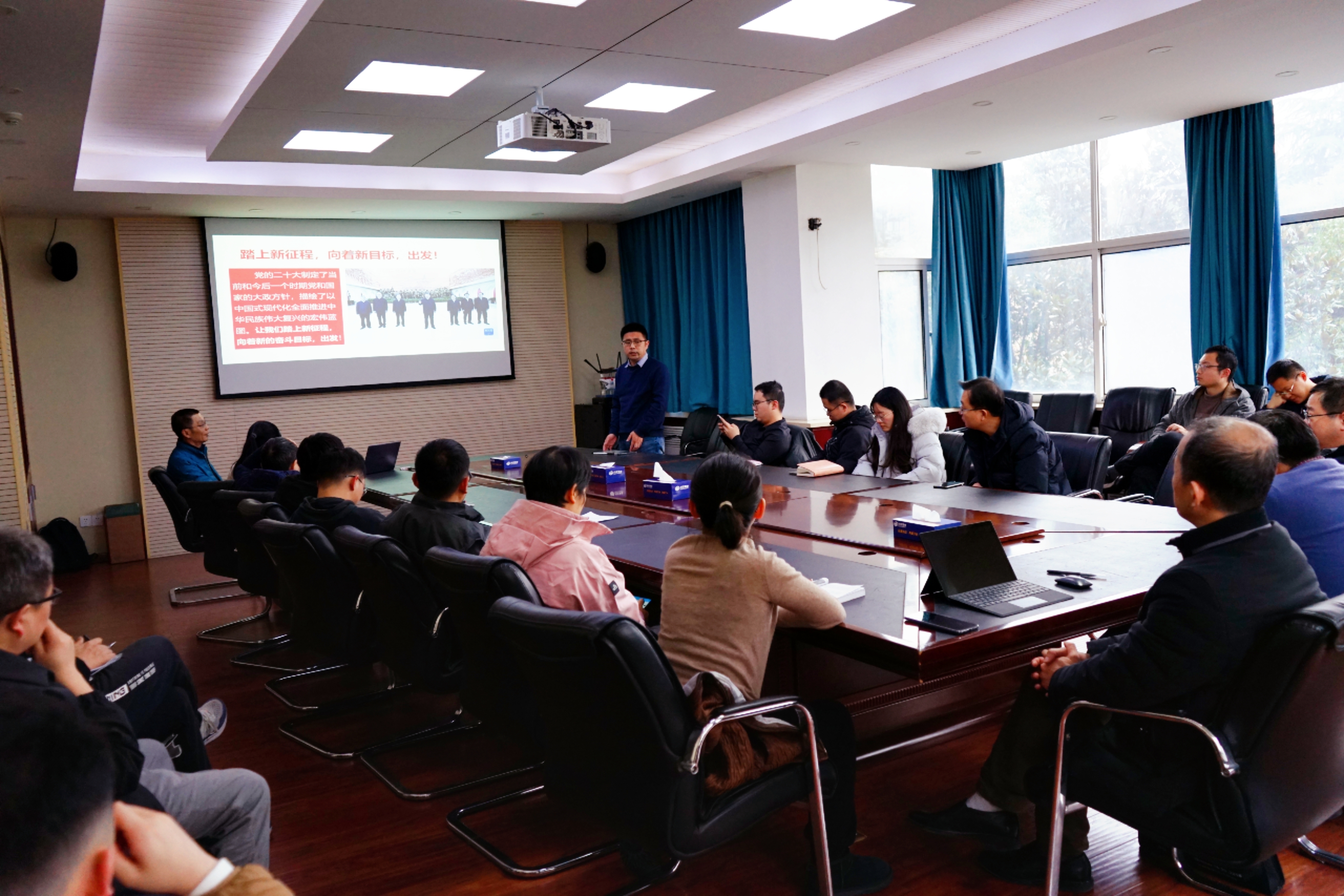 11月30日下午,中科院材料力学行为和设计重点实验室党支部在力四楼201会议室举办“学习领会贯彻党的二十大精神、踔厉奋发谱写建功立业新篇章”主题党日活动,邀请支部联系领导、工程科学学院党委书记刘明侯讲党课,党支部书记吴尚犬主持会议。