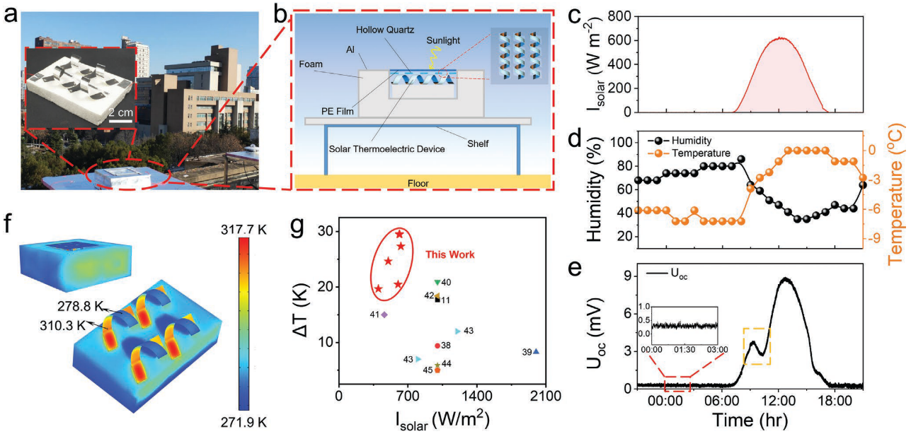 图2.柔性光热电器件的户外测试结果