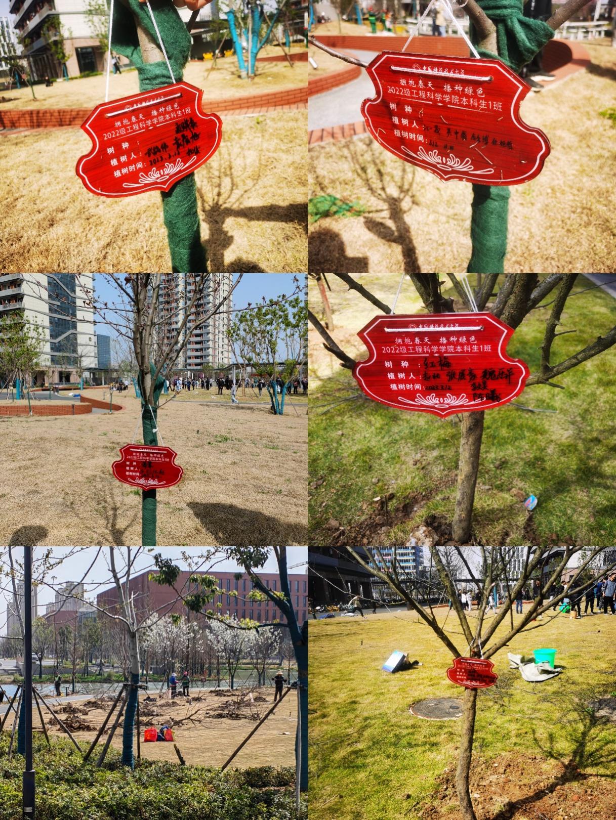 除了各小队独立种植的红梅和海棠之外,还有两棵玉兰也在全班同学的齐心协力之下完成了种植。不同于小树苗,玉兰高度更高,质量更大,对成员之间分工配合的要求也更高。只有团结的协作,细致的操作,才能保证树苗深深扎根在土壤中,不被大风吹歪或吹倒。种下了一颗颗树苗,同学们就多了一份份牵挂,他们为一棵棵生机勃勃的树苗挂上了属于工院一班独特的铭牌,期待与树苗一起茁壮成长,成为校园独特而靓丽的风景。