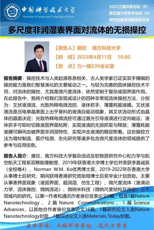 2023工程科学论坛(8)“多尺度非润湿表界面对流体的无损操控”