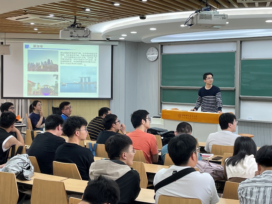 倪劲成研究员从“黑洞照片”出发,向同学们介绍了其所研究的“奇点光学”现象,引起了大家的强烈好奇。同时,他也向同学们分享了自己在新加坡的研究经历,以及新加坡的气候、生活特点。