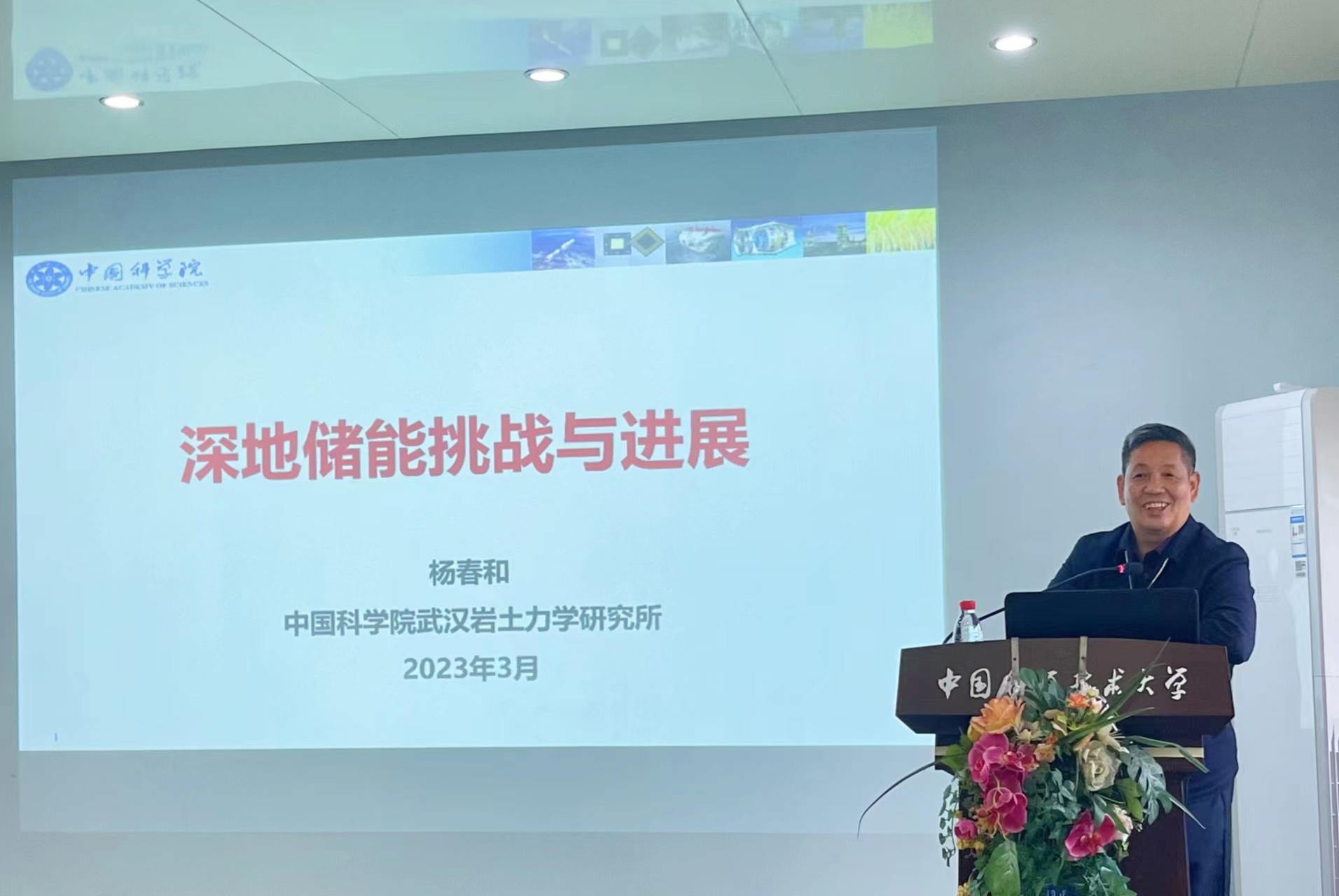 2023年4月6日下午,工程科学论坛之“深地储能”报告会在力一楼239会议室举办,中国工程院院士、中国科学院武汉岩土力学所研究员杨春和应邀主讲,报告会由工程科学学院执行院长吴恒安教授主持。