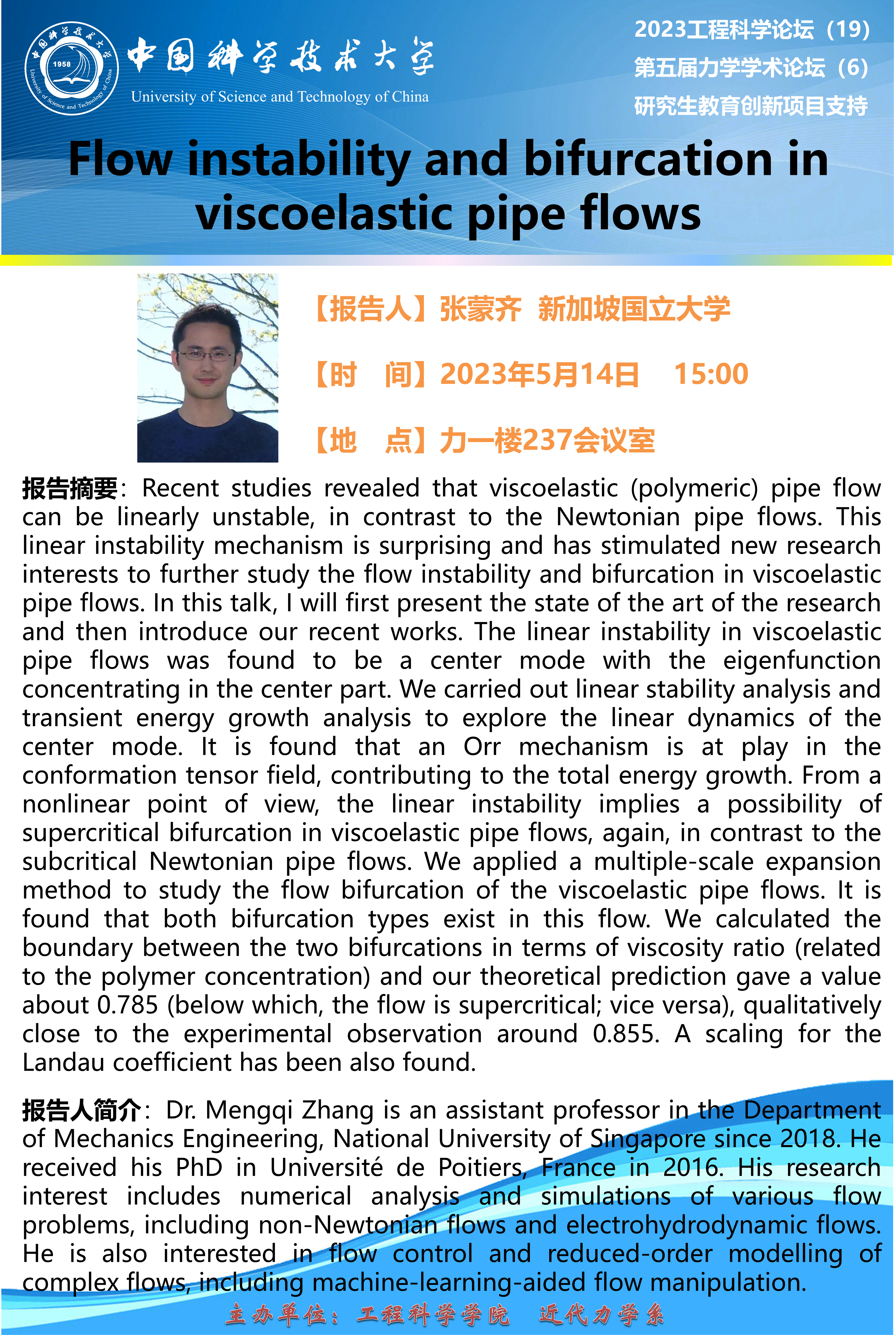 2023工程科学论坛(19)“Flow instability and bifuication in viscoelastic pipe flows”
