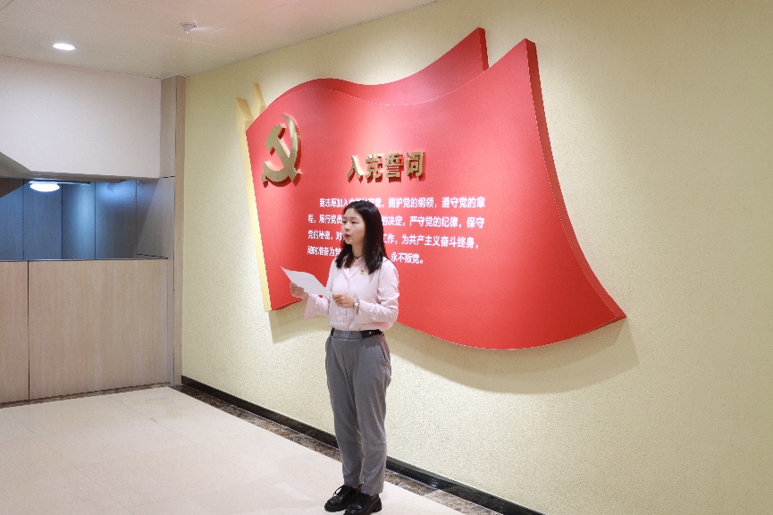 新党员代表赵君怡在发言中感谢党组织的关心、教育与培养。她表示,共产党员不仅是一种称号,更是一种责任、荣誉和使命,我们要以入党作为人生新的起点,刻苦学习、不断创新,努力完成党组织交给的各项工作任务,积极发挥党员的先锋模范作用,为学院和学校的发展贡献青春力量。