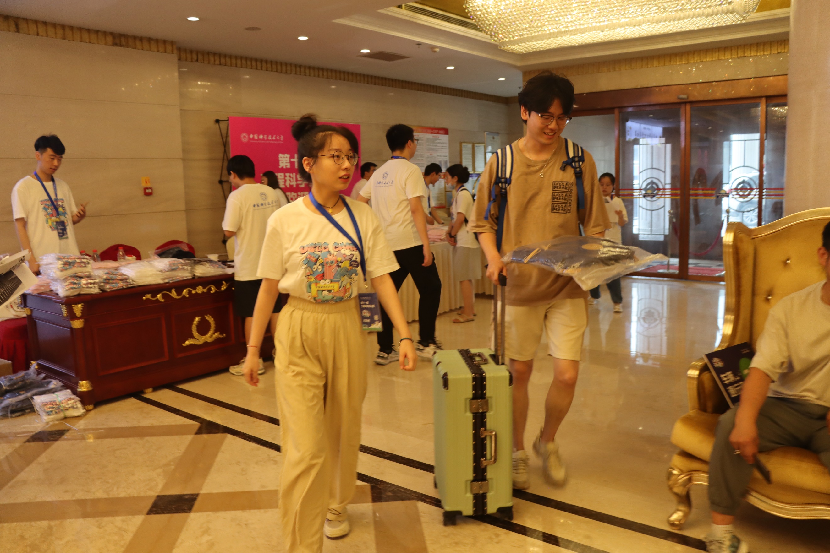 早上8点,夏令营志愿者们就位,随后,各位营员陆续抵达报到现场。在志愿者们的引导下,营员们井然有序地完成信息核对、物资领取、办理入住等一系列报道流程。