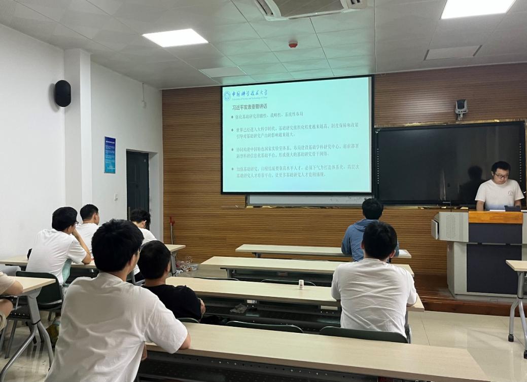 本次活动由支部党员汪奔和郑致远负责筹备。活动伊始,汪奔同志领学习近平总书记在中共中央政治局第三次集体学习中关于基础研究重要性的论述,并结合视频资料,从一个主题和七个重点内容为大家做了梳理和讲解。同志们了解到国家对于科技领域的整体布局是“切实加强基础研究,夯实科技自立自强根基”。