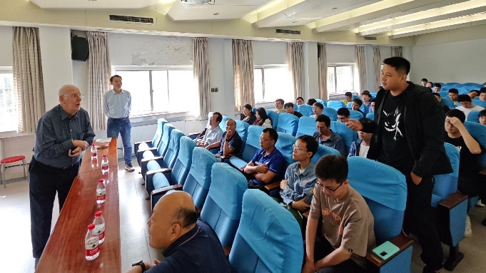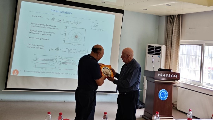 在报告结束后,在场师生针对相关问题同Pullin教授进行了更加深入的交流和讨论,Pullin教授耐心解答了大家的疑问。最后,陆夕云教授代表工程科学学院向Pullin教授赠送纪念品,表示对他的热烈欢迎与对本次精彩报告的感谢。