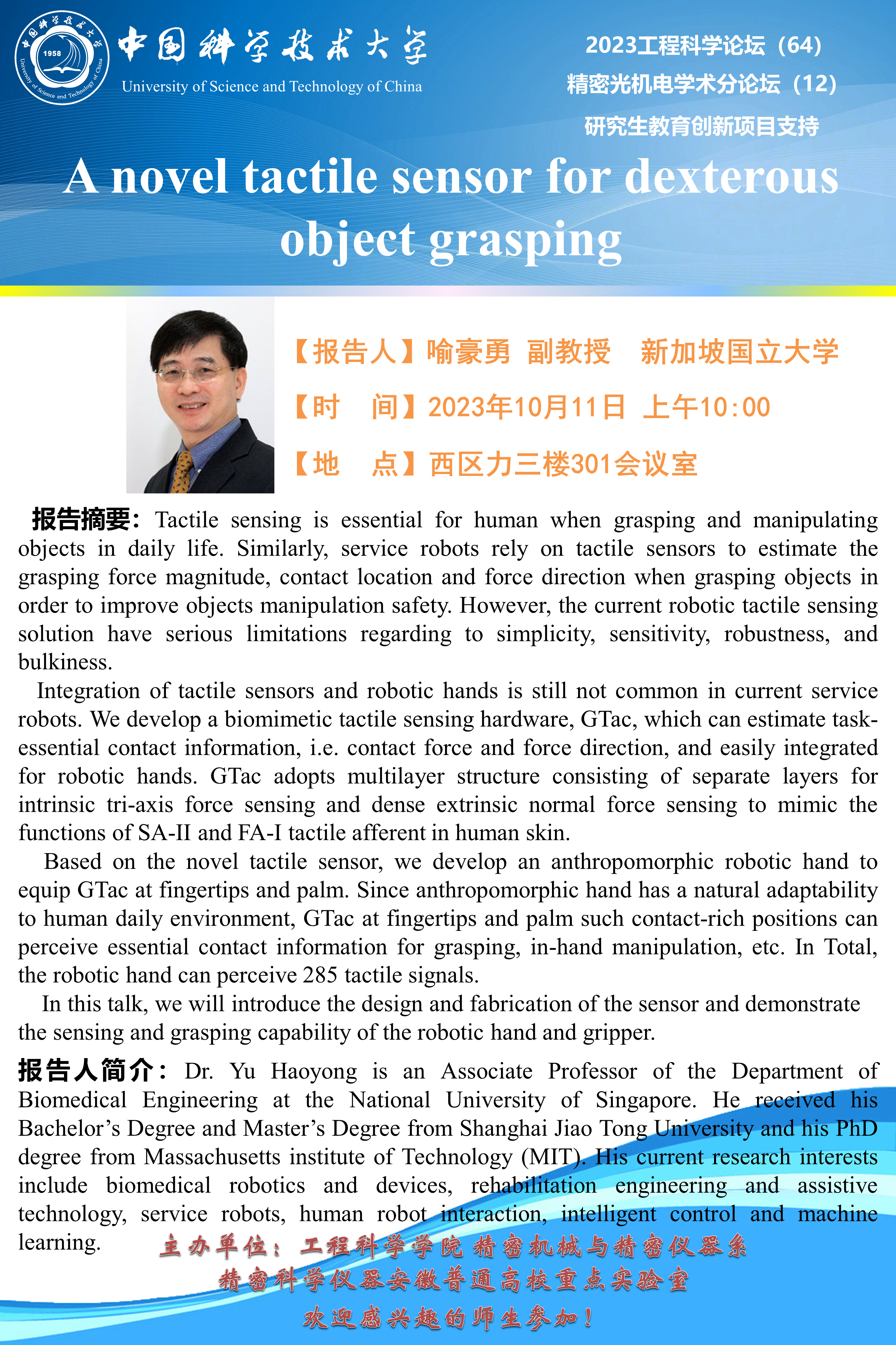 2023工程科学论坛(64)“A novel tactile sensor for dexterous object grasping”
