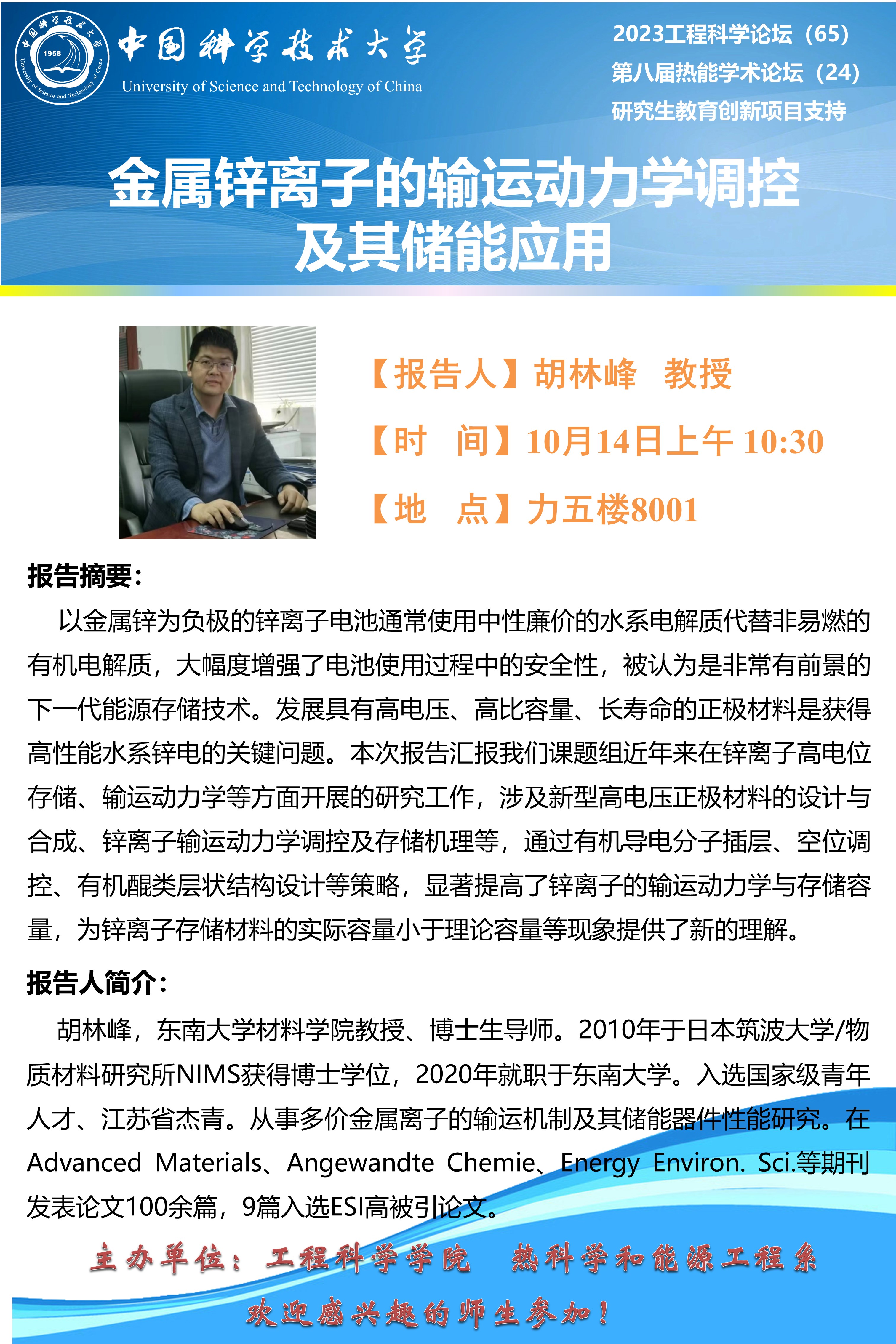 2023工程科学论坛(65)“金属锌离子的输运动力学调控及其储能应用”