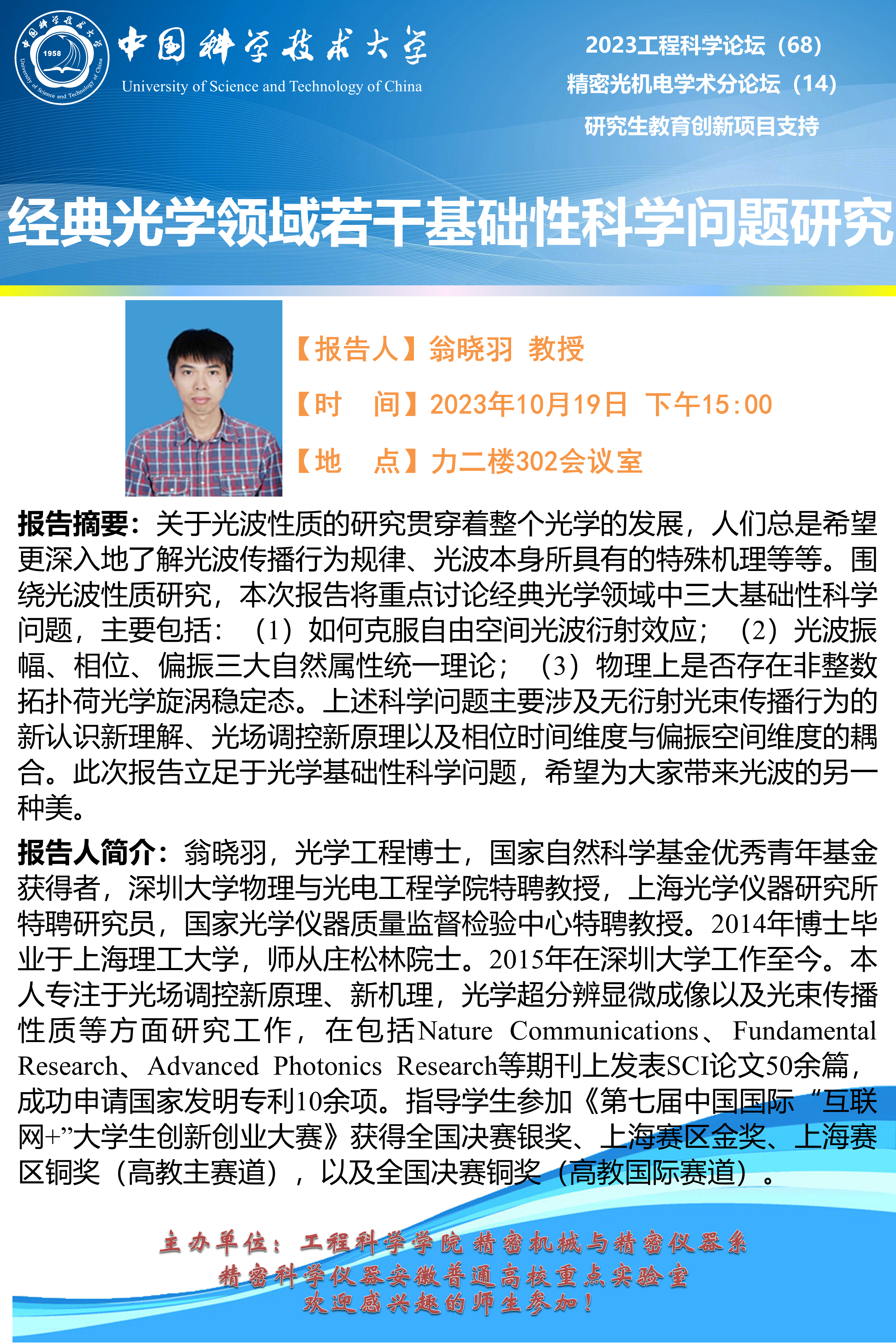 2023工程科学论坛(68)“经典光学领域若干基础性科学问题研究”