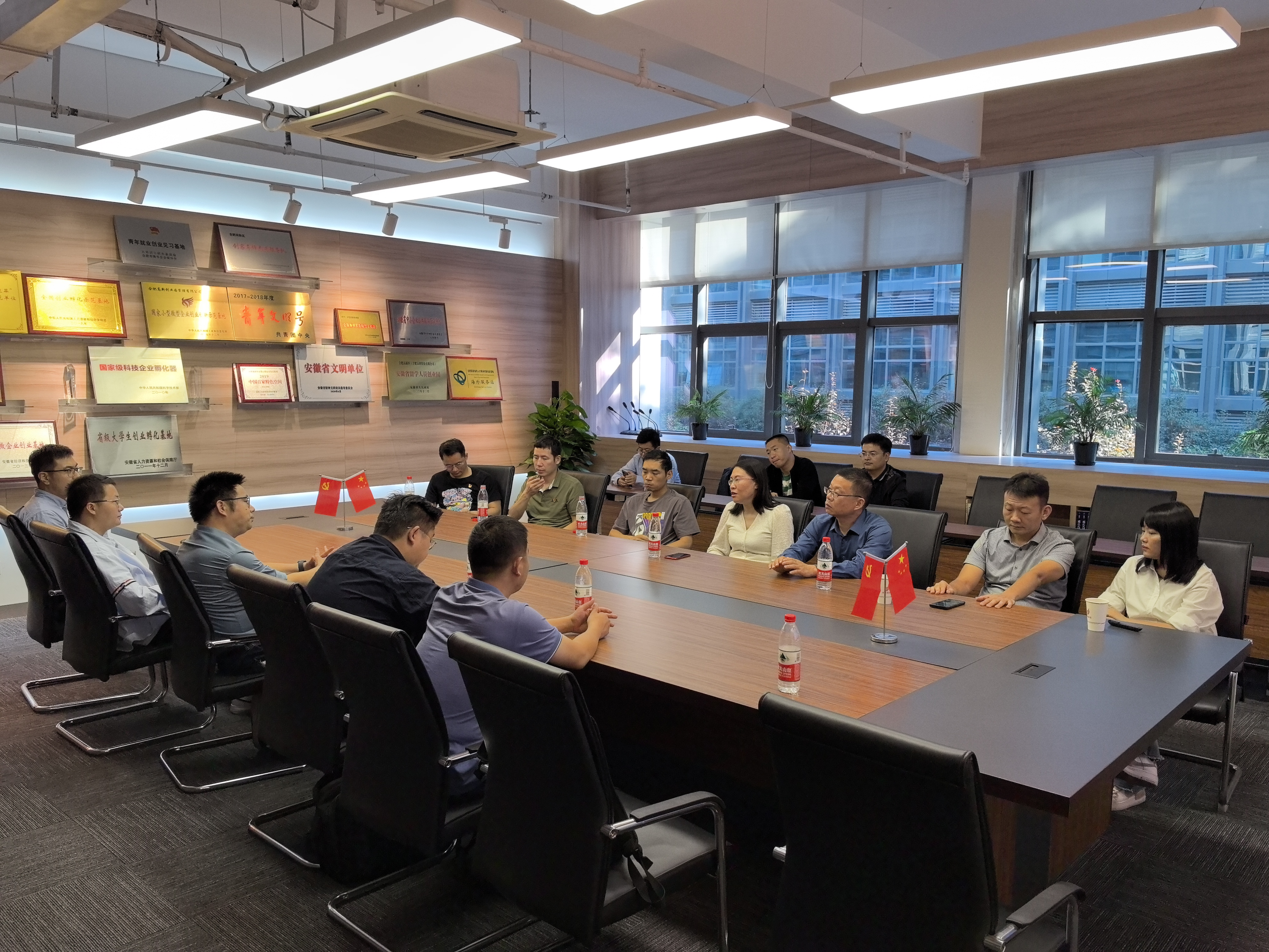 接下来来到安徽省爱国主义教育基地合肥高创股份有限公司(以下简称“合肥高创”),在展厅听取公司的介绍后,公司副总经理田宝亮就高新区创业园区的科研成果转化和落地政策,同大家进行了深入座谈交流。合肥高创是合肥市高新区管委会直属的科技企业孵化器、加速器和创新平台的运营管理机构。合肥高创的服务和管理涵盖“众创空间”到“产业基地”的全程孵化链条物理空间,构建的载体、培育、服务、金融、智慧五大平台,为创业者的企业发展提供了良好的创新创业生态圈,累计培育包括科大讯飞、国盾量子等国家级高企总量达到828家,上市公司13家,新三板挂牌企业26家,科技板挂牌企业47家。