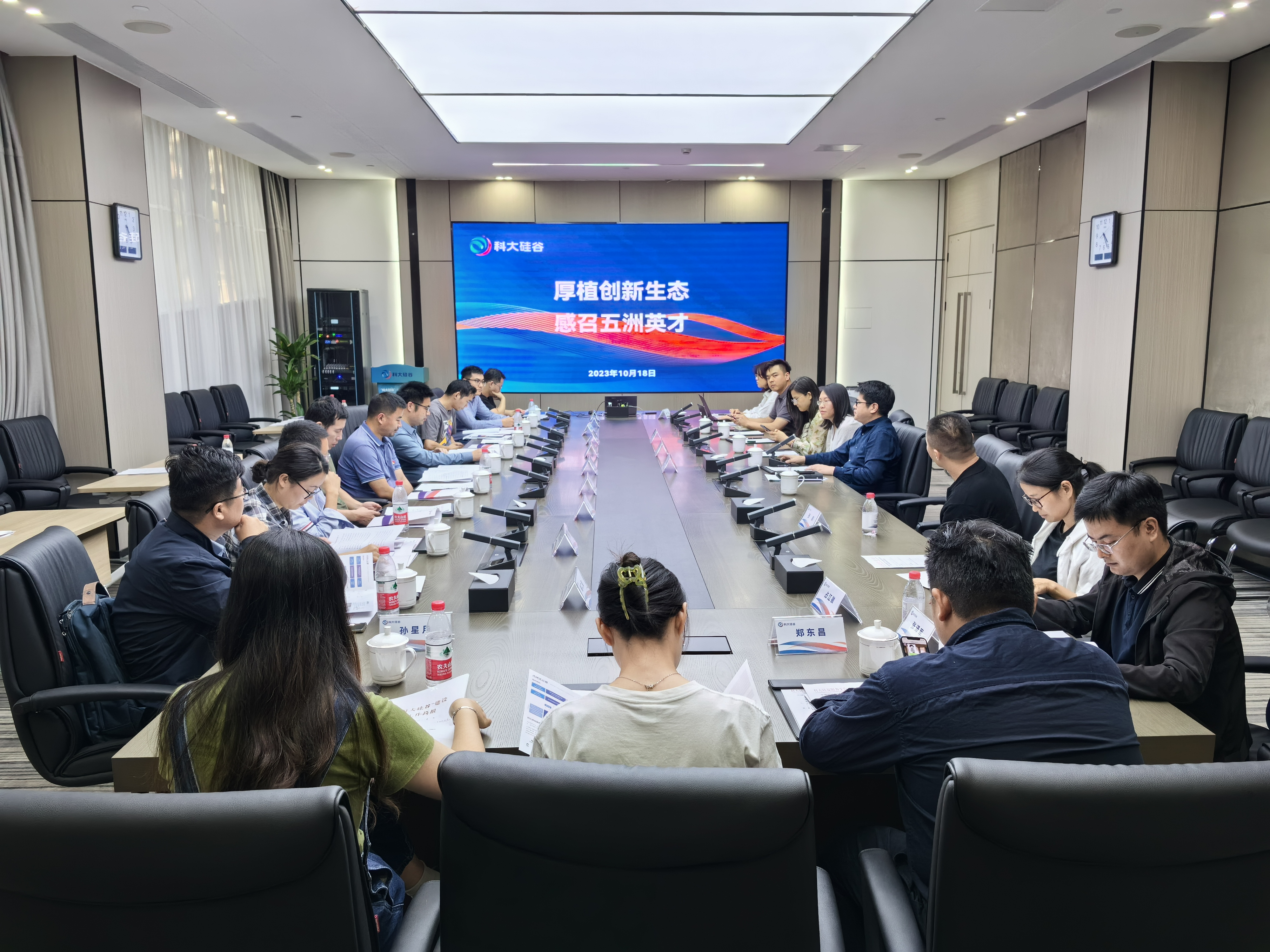 最后,大家来到科大硅谷服务平台有限公司(以下简称“科大硅谷”),在展厅听取公司的介绍后,在会议室同科大硅谷董事长助理周登明、校友事务中心副总经理巴宇澄展开座谈。科大硅谷是由安徽省长王清宪担任领导小组组长,链接全球高校资源的创新成果转化、企业孵化和产业生态优化的平台。成立科大硅谷引导基金,总规模300亿,目标打造2000亿基金丛林,投早投小投科技,为全球科大人提供了很好的创新创业人才政策和科技成果转化孵化空间。