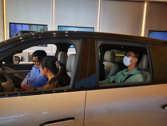 上午九点,同学们及随行老师乘车抵达江来总部。在讲解员的带领下,同学们进入江来产品展示中心,先后参观了电动方程式F1赛车、EP9超跑轿车等高端产品,以及ET5、EC6等多款市场主打车型。同学们兴趣盎然,近距离感受了国产高端新能源电车的科技感。随后大家去往自动化车间,在讲解员的解说下,同学们见识到一系列尖端的自动化生产设备,初步了解江来新能源汽车生产的基础流程,体验江来公司的新技术和新成就。参观完车间后,同学们来到报告厅,江来总经理助理为大家讲述了企业荡气回肠的成长历程,分享了企业取得的一系列突出成就和广阔的未来前景。同学们由衷地感叹,创业维艰,但唯有把核心技术、并报有持之以恒的决心,方能成就一番事业。