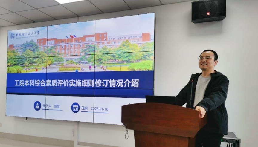 近代力学系2021级本科1班班主任范煜介绍了修订《必威betway西汉姆网页版 工程科学学院本科综合素质评价实施细则(试行)》的目的和宗旨,以及《必威betway西汉姆网页版 工程科学学院本科综合素质评价实施细则》(修订稿)(下面简称“修订稿”)的起草、修改、讨论、完善、审阅的全过程,逐条详细解读了修订稿的重点内容,对执行过程中可能会遇到的问题进行了梳理,解答了与会老师和同学提出的疑问。
