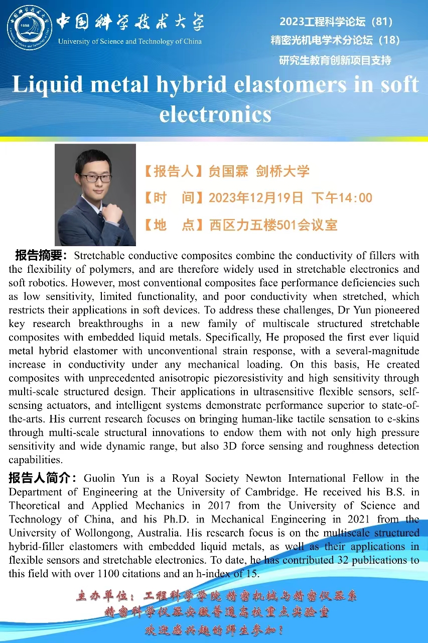 2023工程科学论坛(81)“Liquid metal hybrid elastomers in soft electronics”
