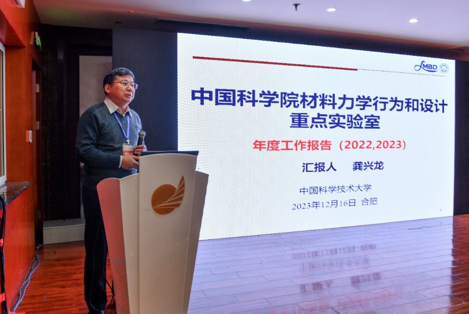 重点实验室主任龚兴龙教授从实验室团队建设、2022-2023年取得的主要成绩、2024年工作思考和展望等方面汇报了实验室工作,表示将致力于构建前沿平台、发展先进力学手段,推进仿真设计、探究结构构效关系,着眼结构调控、实现材料性能突破,面向国家需求、拓展力学学科应用。