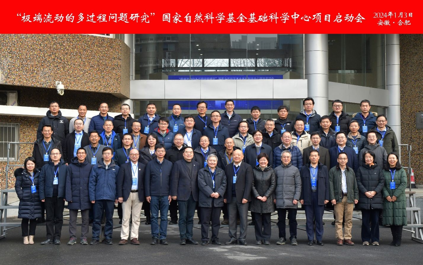 2024年1月3日,国家自然科学基金基础科学中心项目“极端流动的多过程问题研究”启动会在合肥顺利召开。国家自然科学基金委党组成员、副主任江松院士、数理科学部常务副主任董国轩、中国科学院前沿科学与教育局副局长魏志祥、必威betway西汉姆网页版 校长包信和院士出席会议。启动会由项目负责人陆夕云院士、项目骨干成员必威betway西汉姆网页版 罗喜胜教授和清华大学符松教授共同主持。
