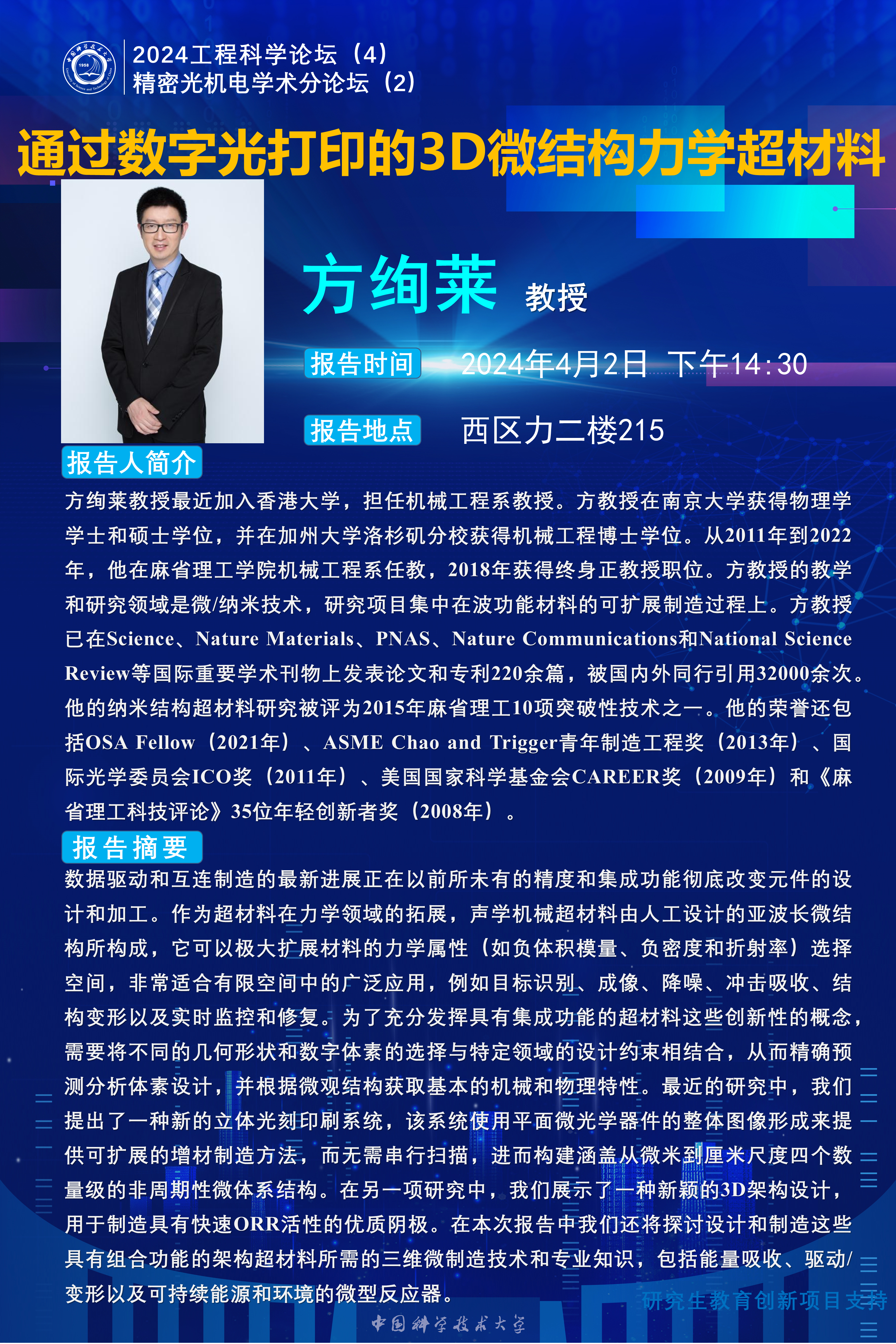 2024工程科学论坛(4)“通过数字光打印的3D微结构力学超材料”