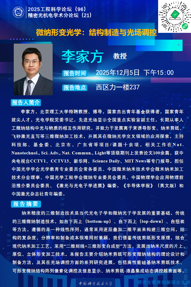 2025工程科学论坛(96)“微纳形变光学:结构制造与光场调控“