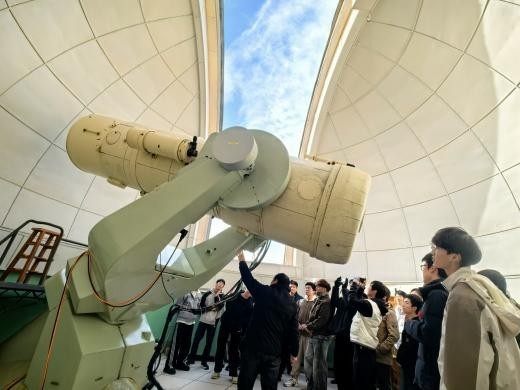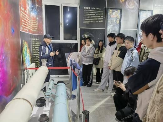 11月15日至16日,师生们首先抵达位于燕山深处的国家天文台兴隆观测基地。在聆听了关于基地建设与天文观测流程的专题报告后,同学们依次参观了施密特望远镜和我国自主研制的2.16米天文光学望远镜,深入了解其光学原理、技术特点及科研贡献。当夜,在澄澈的兴隆夜空下,师生们通过专业望远镜亲身观测银河旋臂等天体,体验了天文实测的严谨与魅力。次日,团队重点参观了郭守敬望远镜(LAMOST)。工作人员详细讲解了其创新的反射施密特改正镜设计、并行可控式光纤定位系统等核心技术。作为国际领先的大口径兼大视场光谱巡天望远镜,LAMOST已获取超过2800万条光谱数据,是我国实现高端科研装备从追赶到跨越的生动例证,令同学们深感震撼。